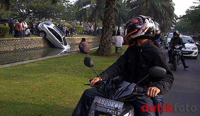 c) A Toyota Harrier took a short cut route to a faster car wash, and when towed back to solid ground, remained as grand as ever.